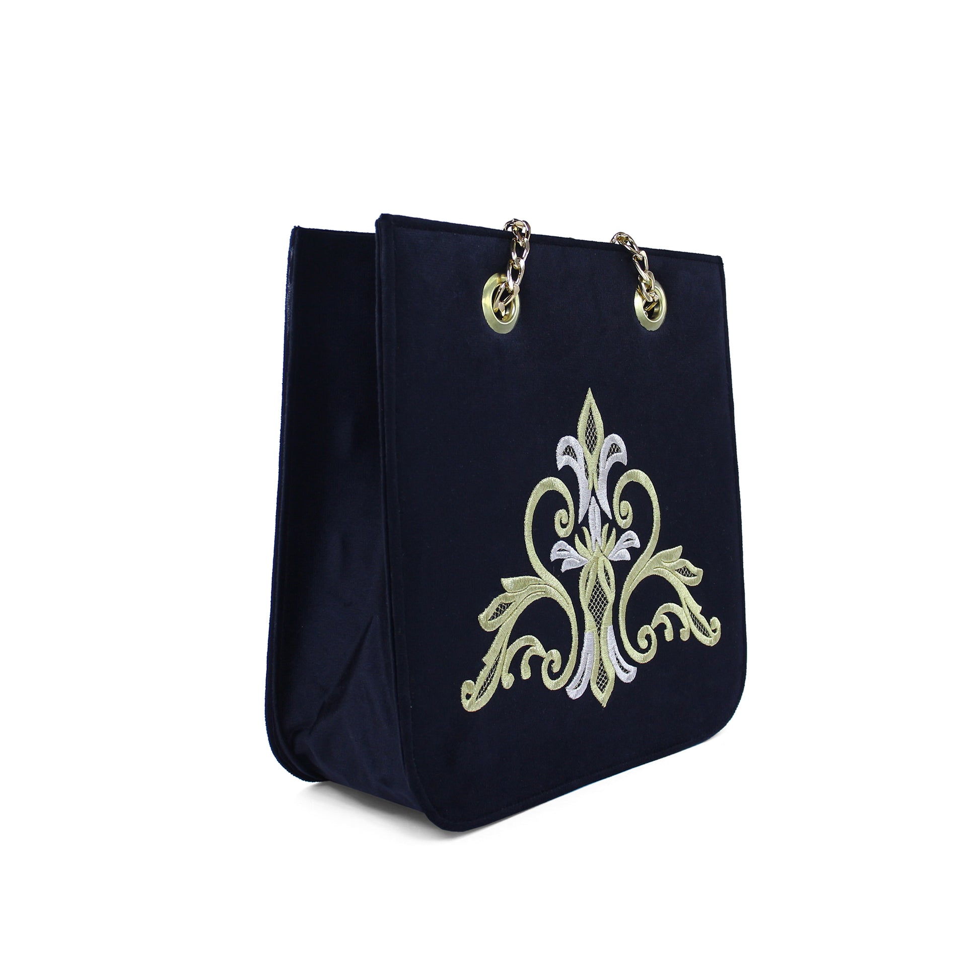 Meticulously embroidered on rich black velvet, this clutch combines timeless artistry with modern sophistication — perfect for weddings, evening events, or as a meaningful cultural accessory.