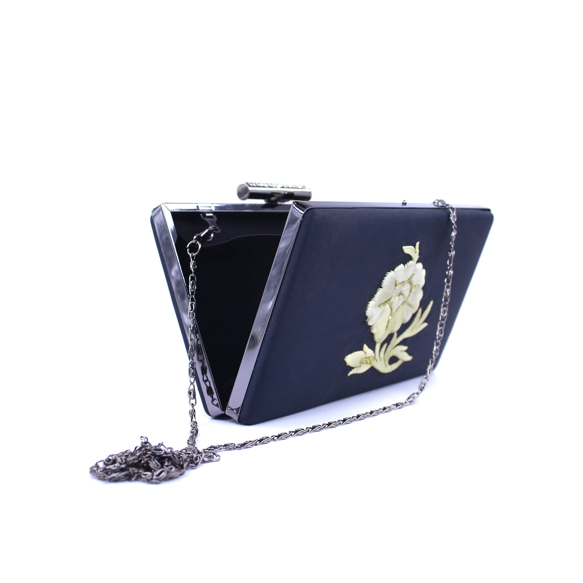 Handmade Black Velvet Clutch Bag – Gold Floral Embroidery