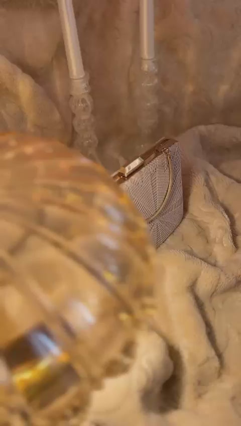 Altın zincirli zarif el yapımı dantel clutch çanta – düğünler, davetler ve özel geceler için mükemmel bir tamamlayıcı.